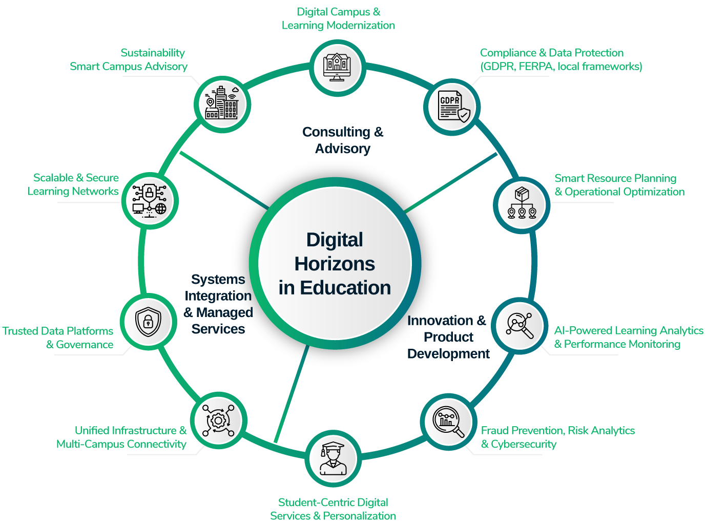 We build high-availability, cloud-native network foundations that allow institutions to scale digital services securely, supporting hybrid learning, content delivery, and remote collaboration across multiple campuses or geographies.